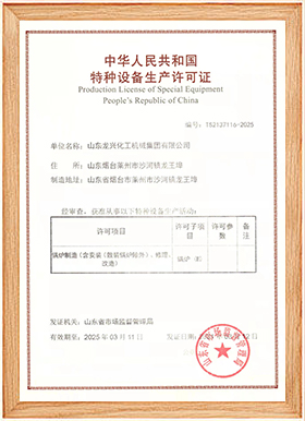 嚴格的質(zhì)量控制與認證: 山東龍興化工機械集團擁有一系列認證,包括一二三類壓力容器制造和設計證書,以及鍋爐制造許可證。這確保了他們產(chǎn)品的質(zhì)量和安全性,尤其是在涉及高壓和高溫條件下的應用